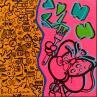 L'artiste a utilisé différentes techniques pour créer cette peinture petit format sur toile de style Pop art sur le thème icones Pop.