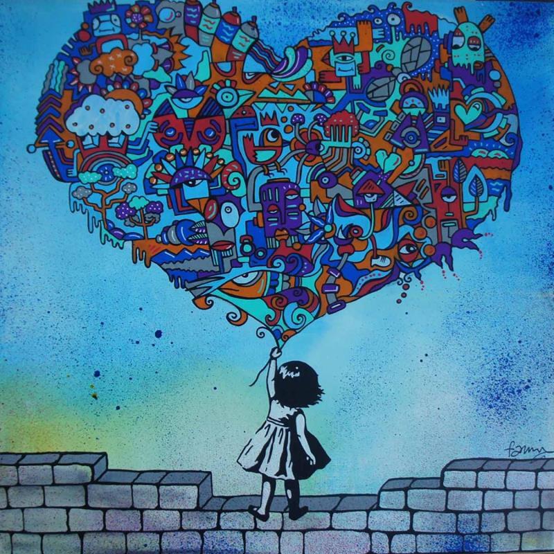 Peinture Libre d'aimer par Fanny | Tableau Pop-art Scènes de vie Enfant Acrylique