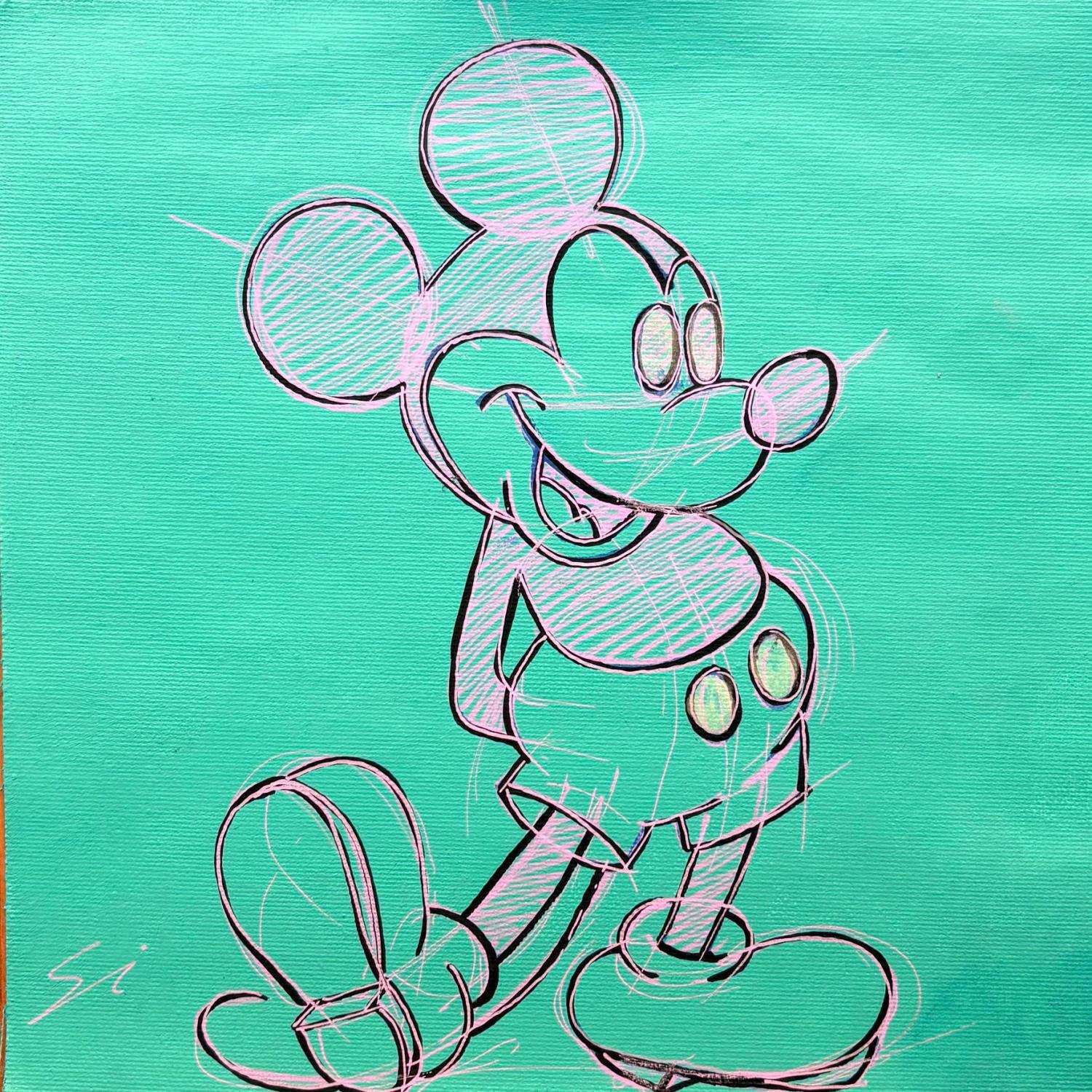 Cette oeuvre d'art contemporain unique et originale "MICKEY FLUOR EYES" a été réalisée par l'artiste contemporain Mestres Sergi.