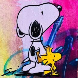 Cette oeuvre d'art contemporain unique et originale "The gold book of snoopy" a été réalisée par l'artiste contemporain Mestres Sergi.
