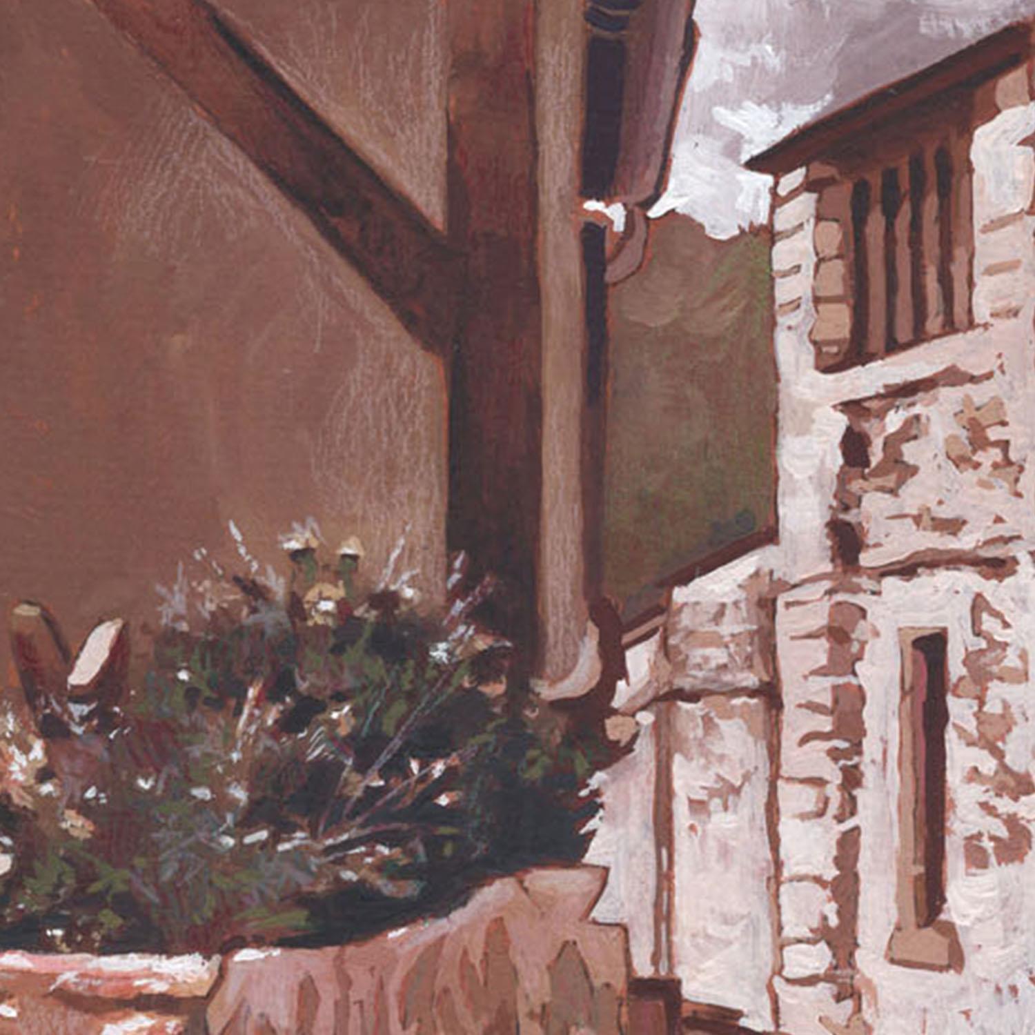L'artiste a utilisé les techniques Huile, Acrylique pour créer cette peinture petit format sur Papier de style Réalisme sur les thèmes Urbain, Architecture.